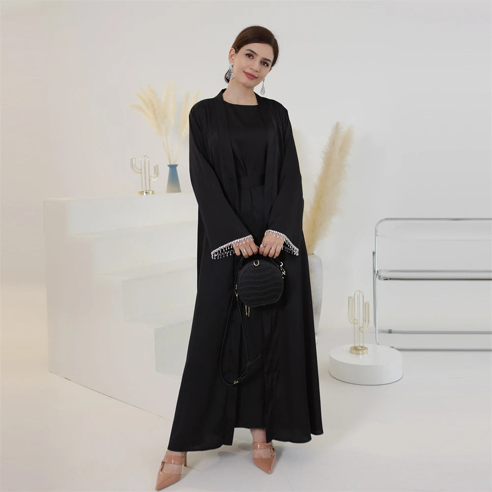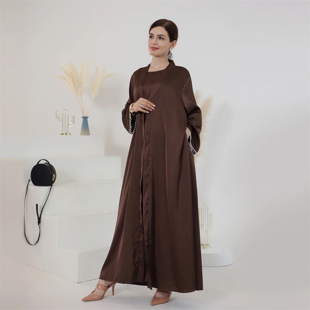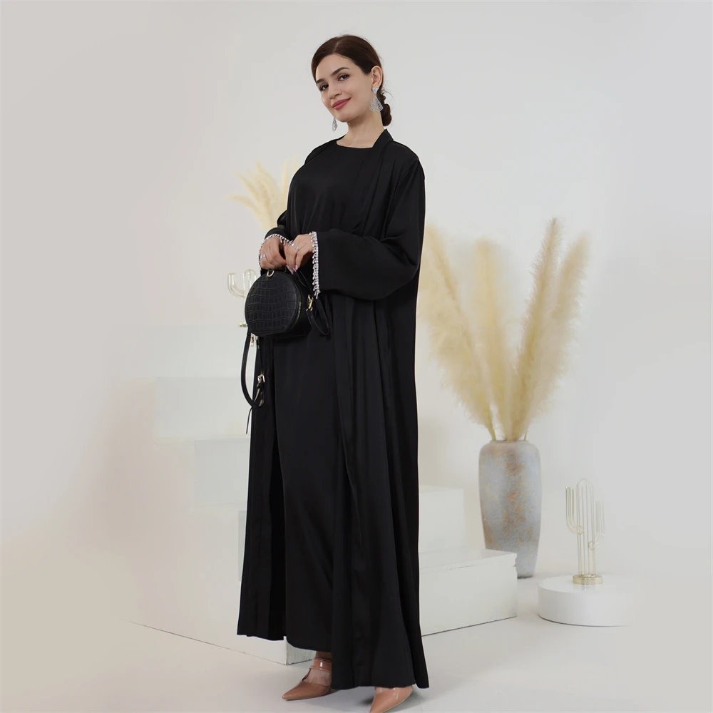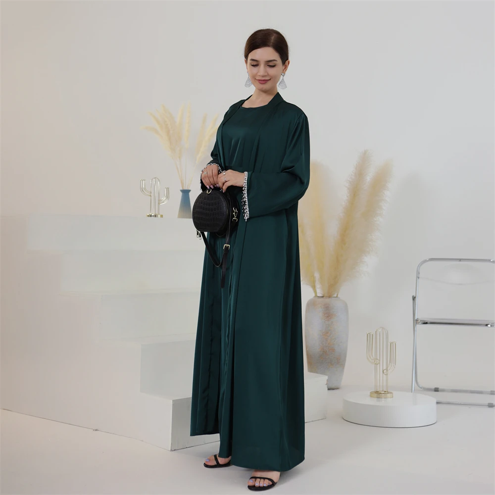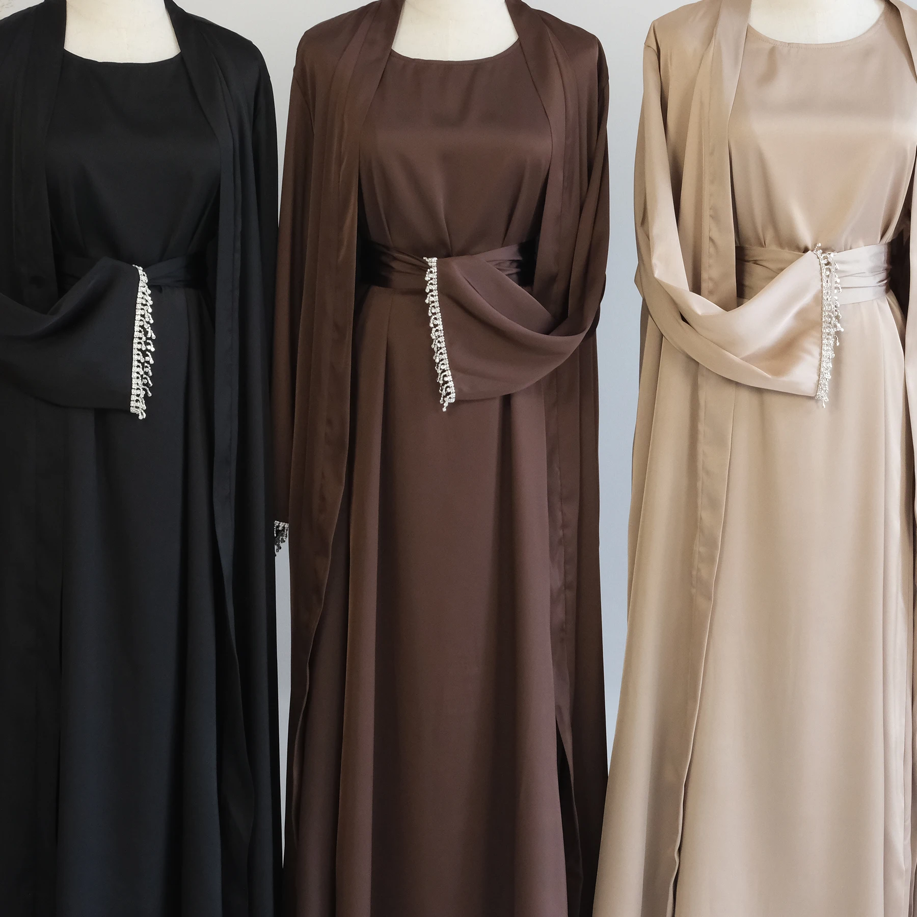 Eid Ramadan Satin Open Abaya Kimono 2 Piece Sets Muslim Women Dresses Turkey Arabic Kaftan Party Dubai Abayas Gown Outfit Caftan