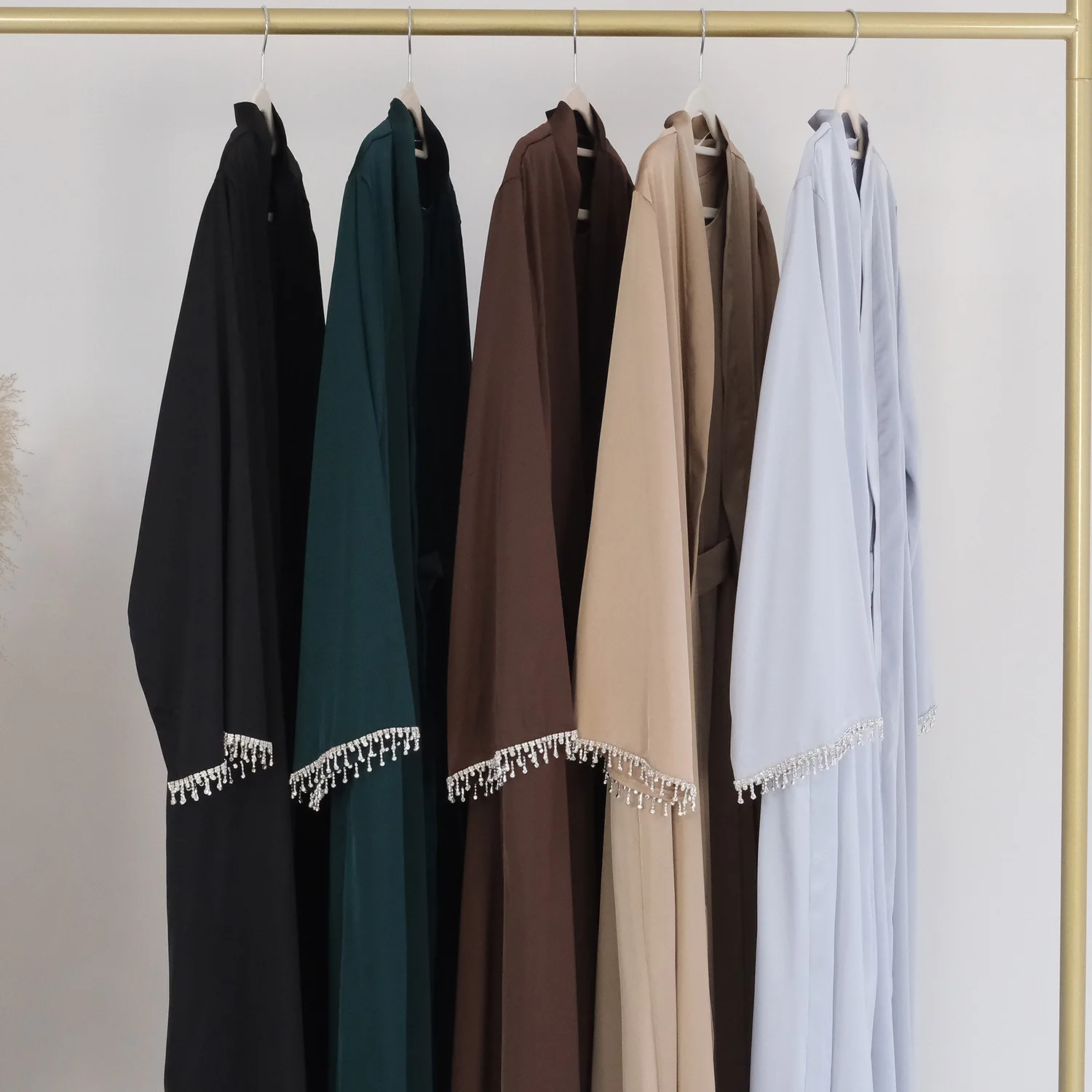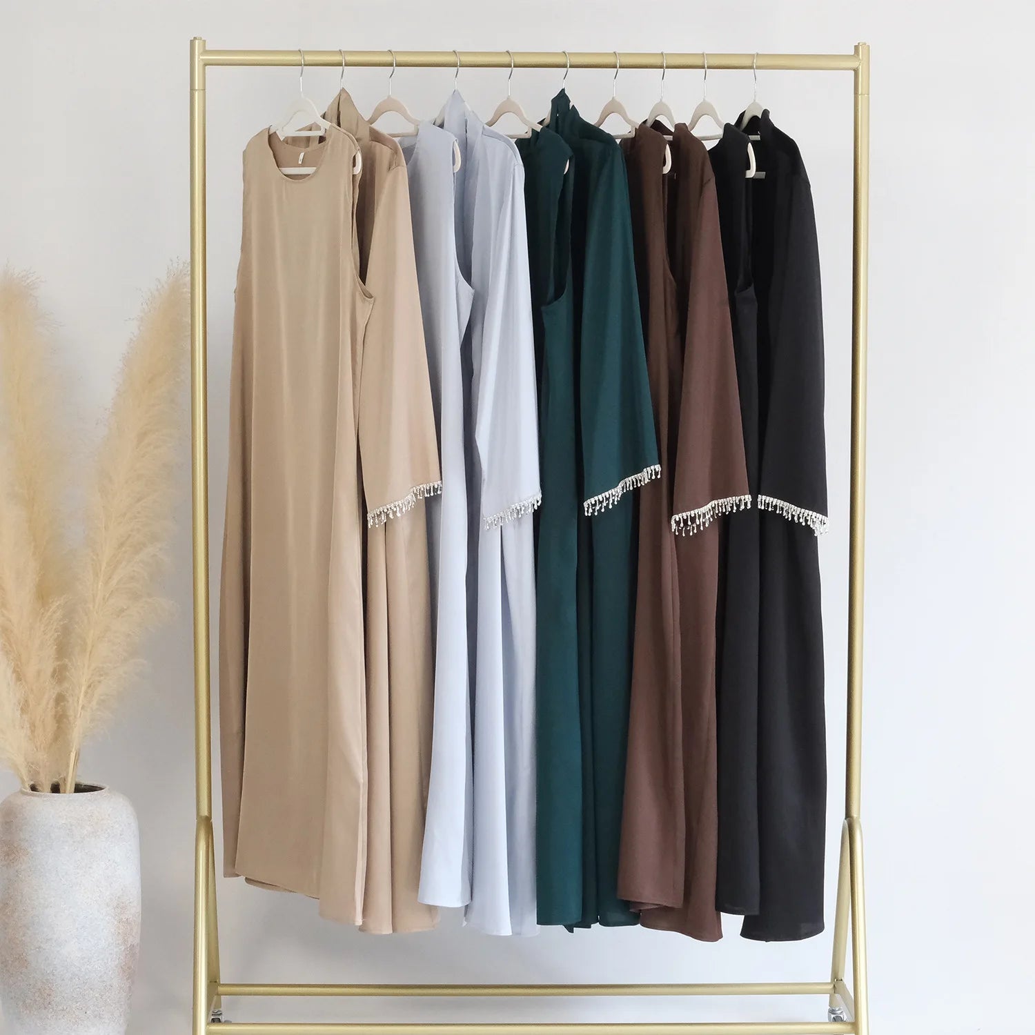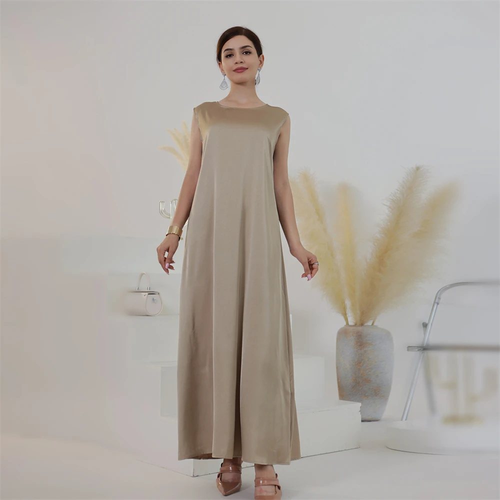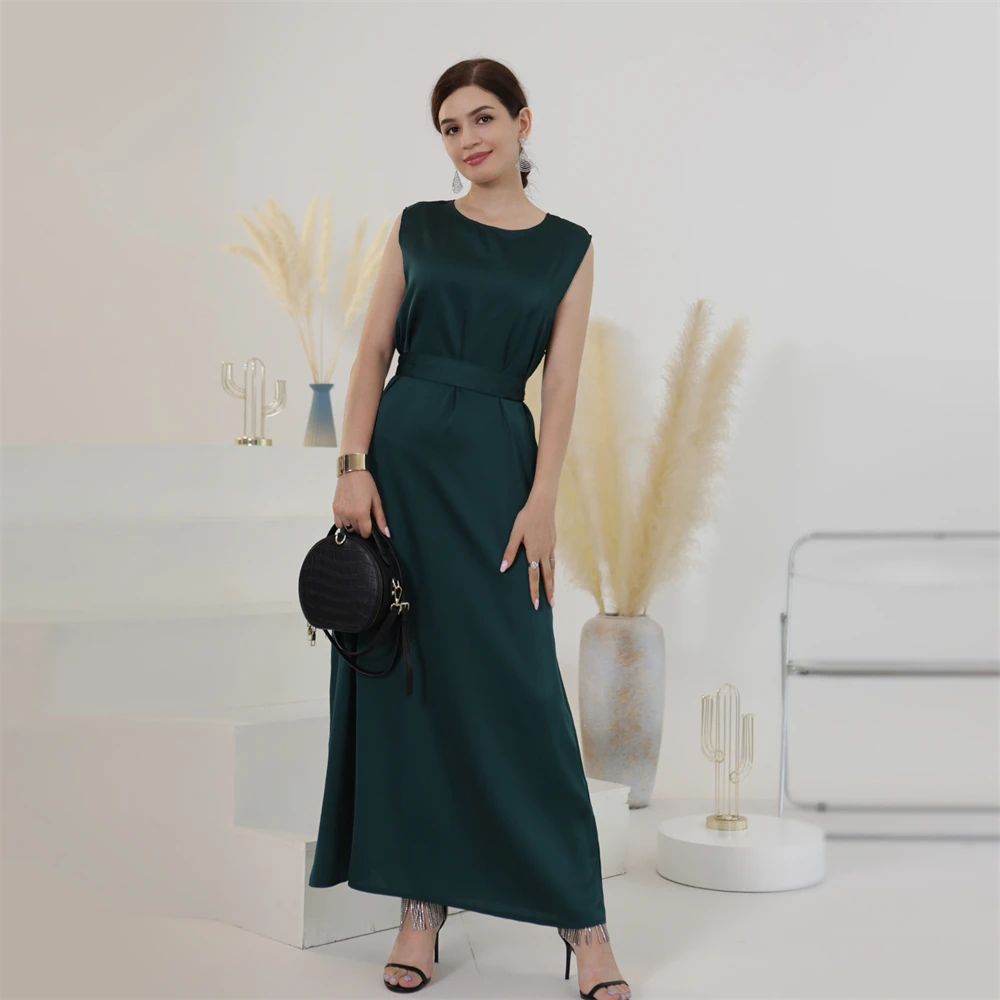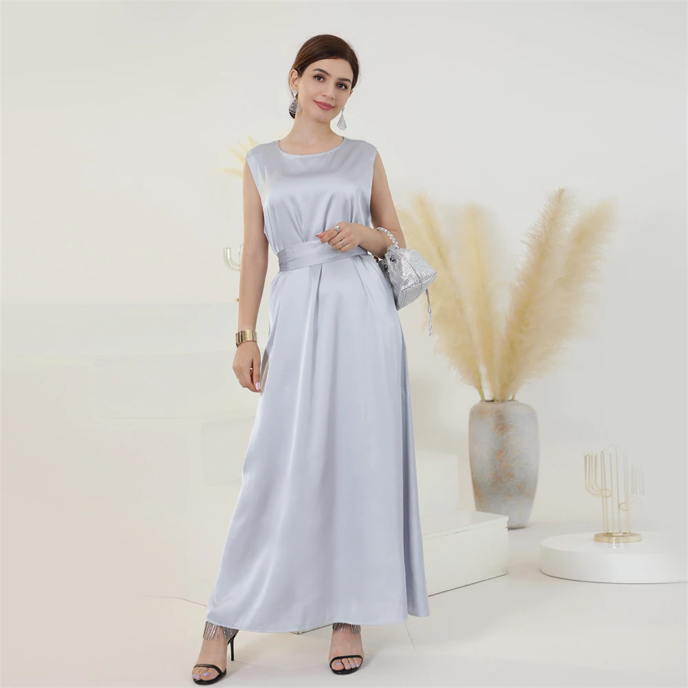 Eid Ramadan Satin Open Abaya Kimono 2 Piece Sets Muslim Women Dresses Turkey Arabic Kaftan Party Dubai Abayas Gown Outfit Caftan