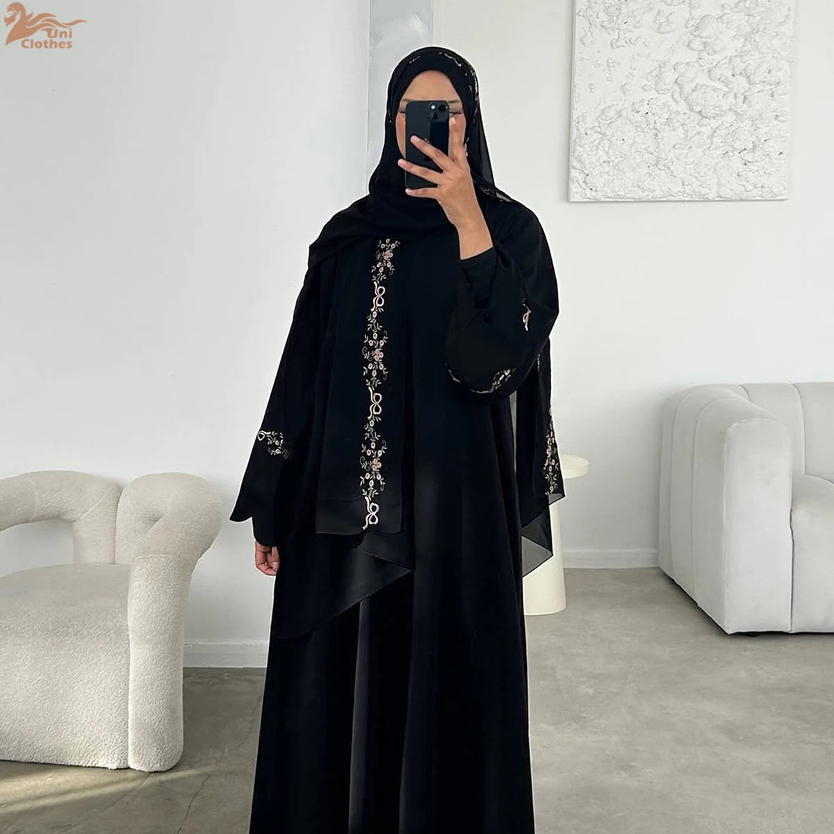 Uni 2025 Muslim Womens Clothing Nida Embroidery Abaya Dubai Cardigan Modest Abaya Womens Dresses with Matching Hjiab